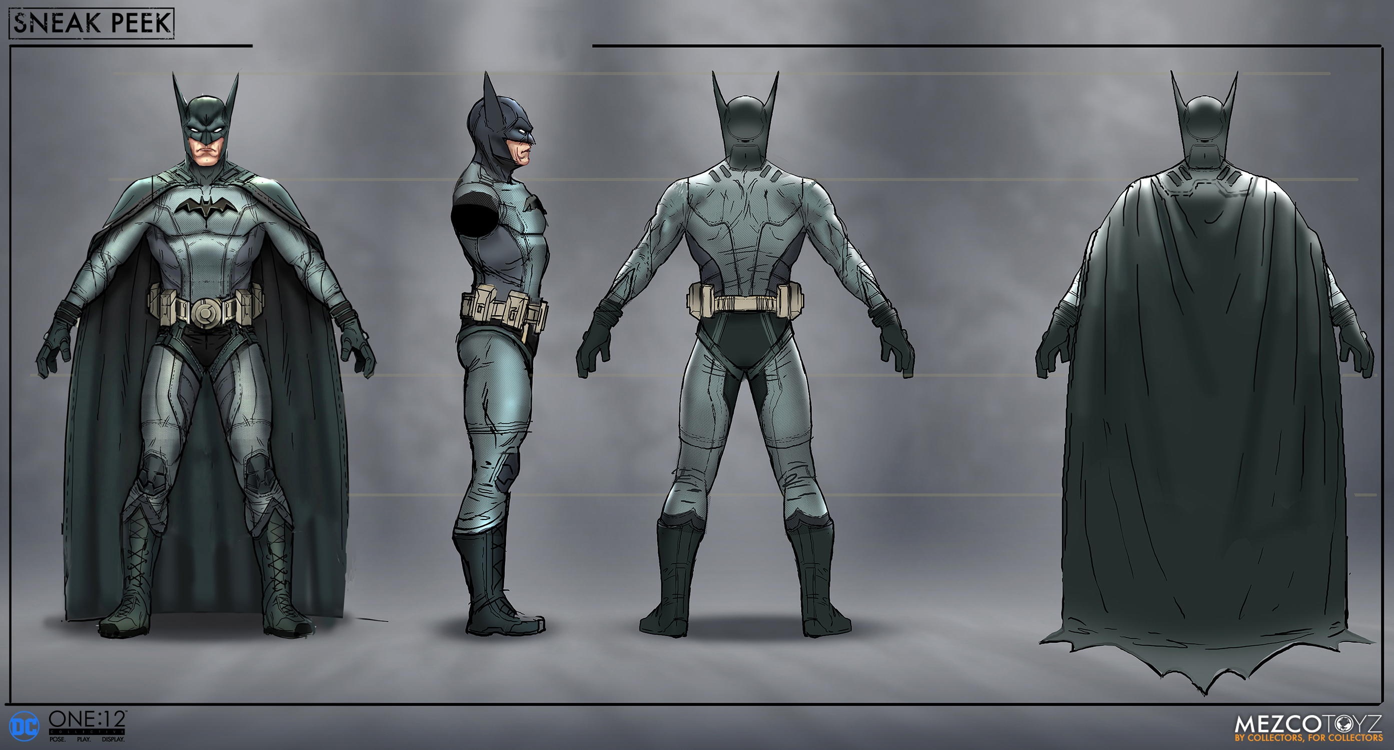Below you will find some initial concept art, in progress digital renderings and some sneak peek pictures of the prototyped figure. You will see where the figure evolved from, what items did not make the cut and how we got from concept to execution on the One:12 Collective's Batman-Ascending Knight figure.