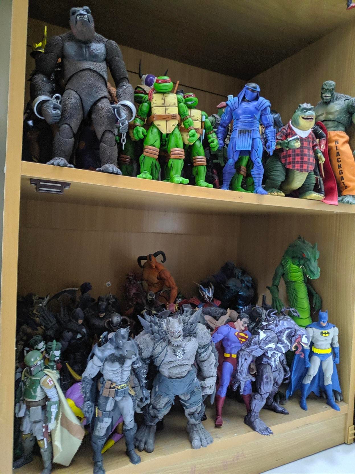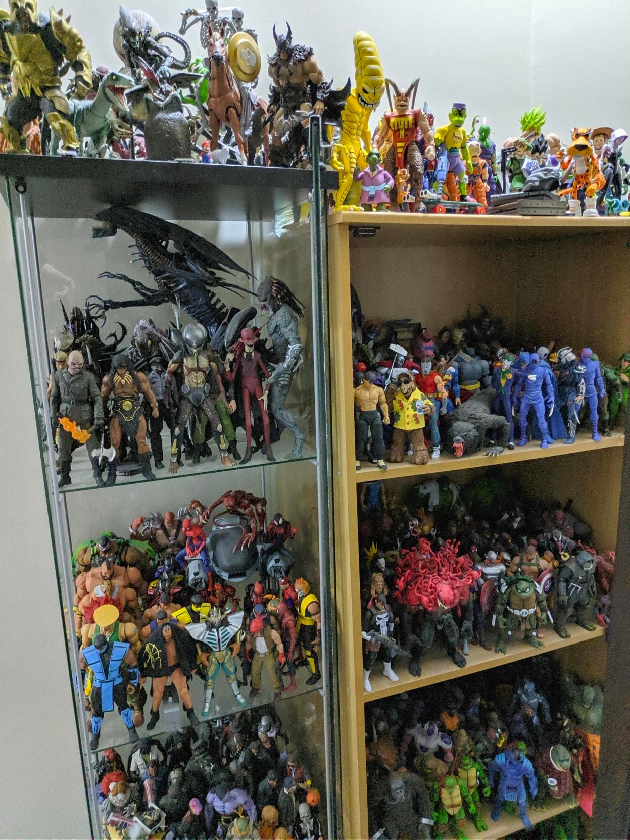 A: My collection primarily revolves around characters that have held significance for me since childhood, including those from horror, comics, movies, and games.