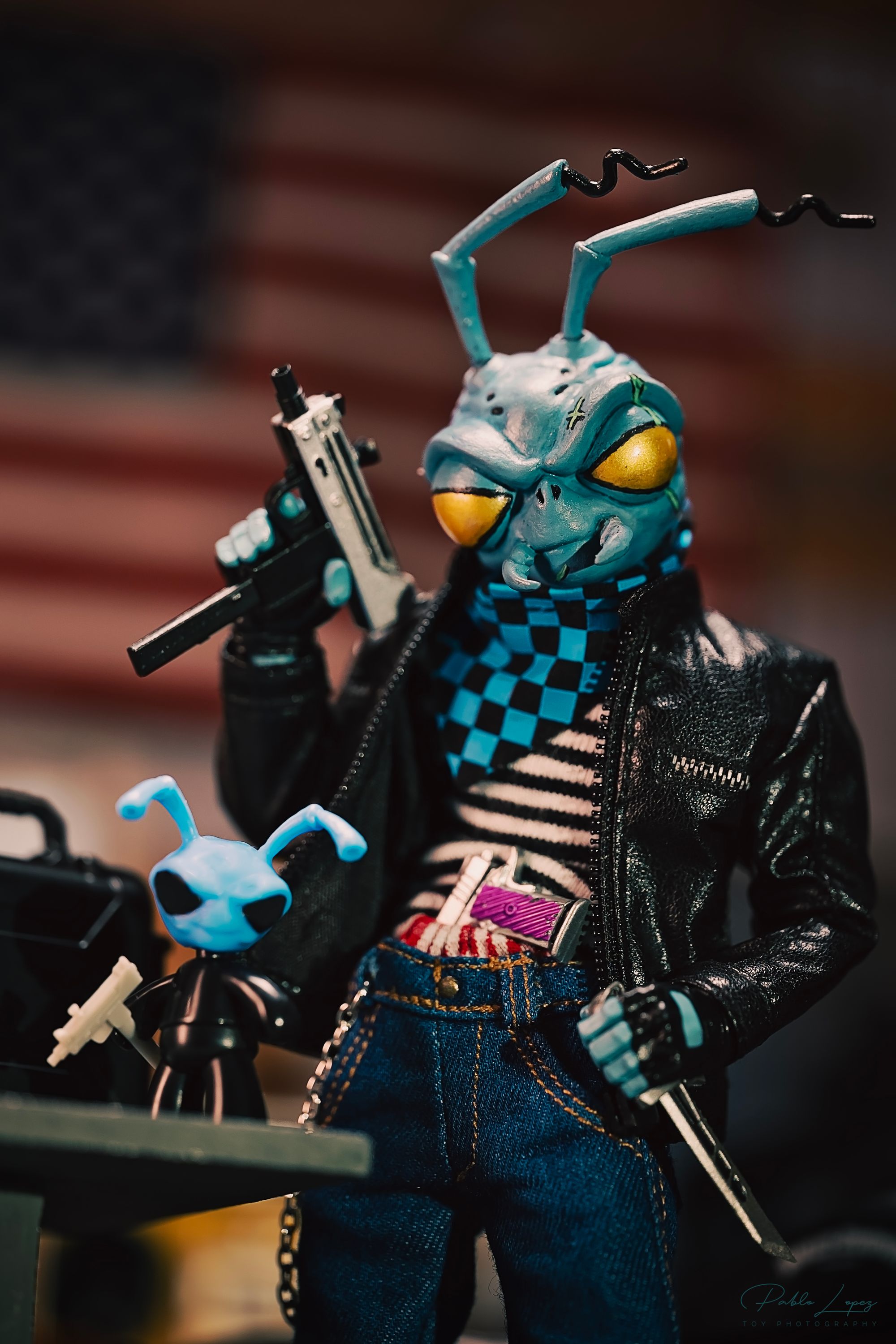 Inspiration: I was inspired to take this photo by the surprise reveal posted on Saturday for Rumble Con 2023, the Gomez Biker set. I like the idea of Rumble Society characters being a part of a Motorcycle club/gang. The custom-painted head of Gomez was done by my friend @redeemercustom, I had requested for him to paint it to match the Vapor body because I love the smaller body and wanted a shorter Gomez Character which I named Azure, which means Blue. The shirt used is from the PSCC gig from hell set and the bandana, the jacket is from Cuzin Eddi, and weapons from the Joker deluxe edition and Hawk P-40 added a chain to finish the look.