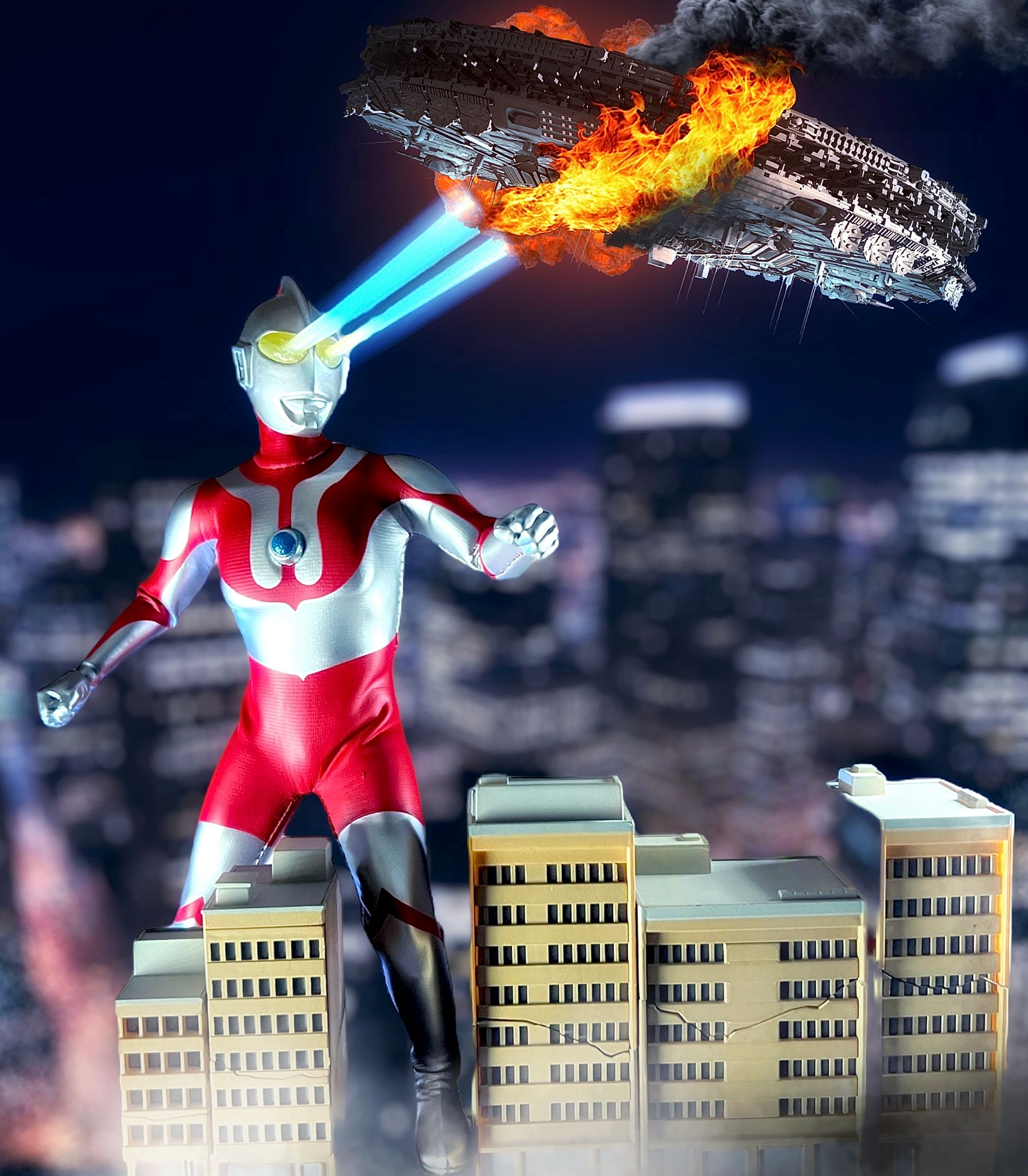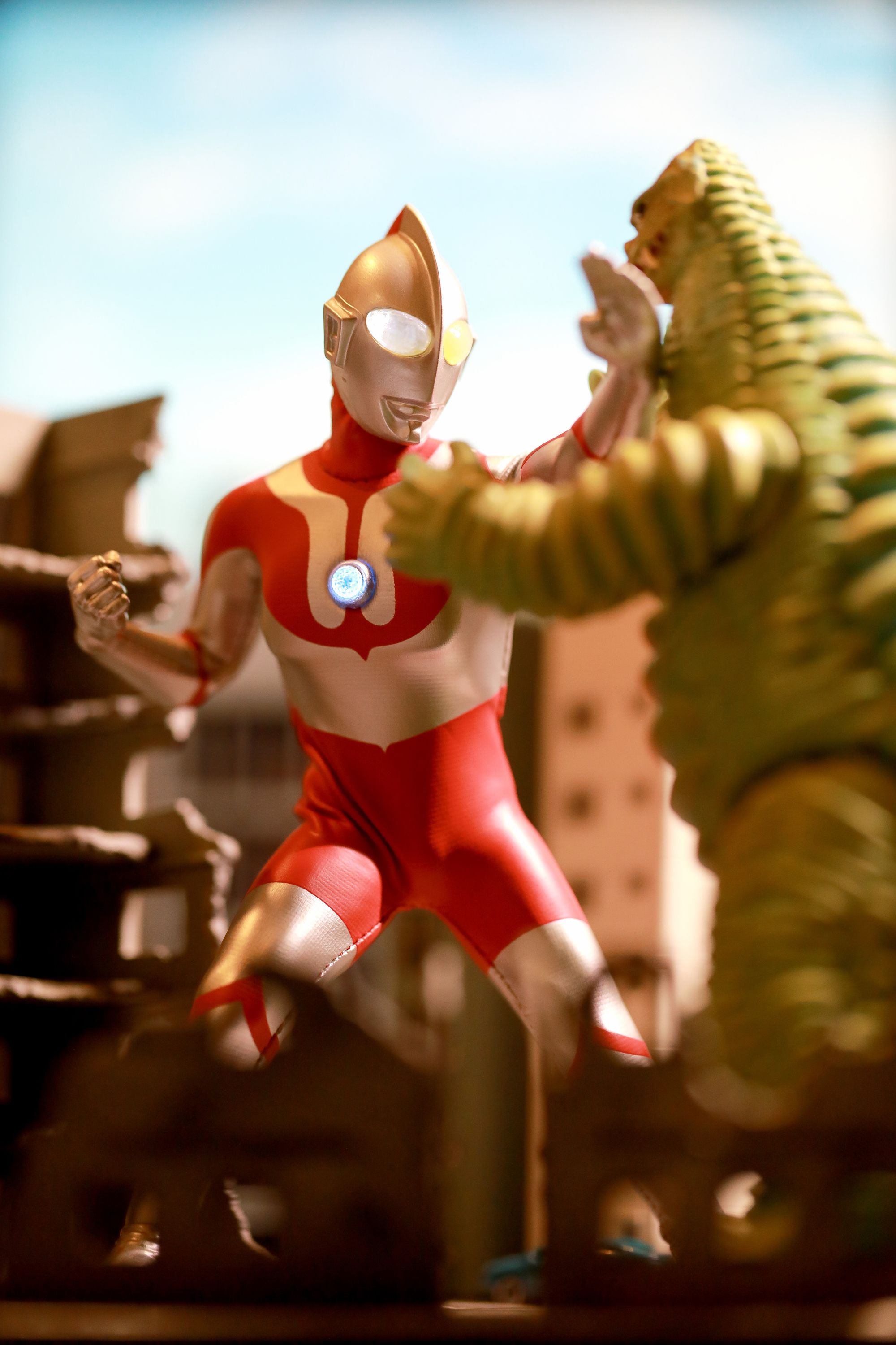 Inspiration: First off I’d just like to say that this Ultraman is nothing short of perfection. The way the material wrinkles and creases in all the right places make you feel like you truly have a mini Ultraman hanging in the comfort of your own home. It is because of this that I chose to recreate the iconic transformation shot. With the dope LEDs of the figure and the way the light just glides across that silver of the body, once you see Ultraman grow….it’s about to go down!