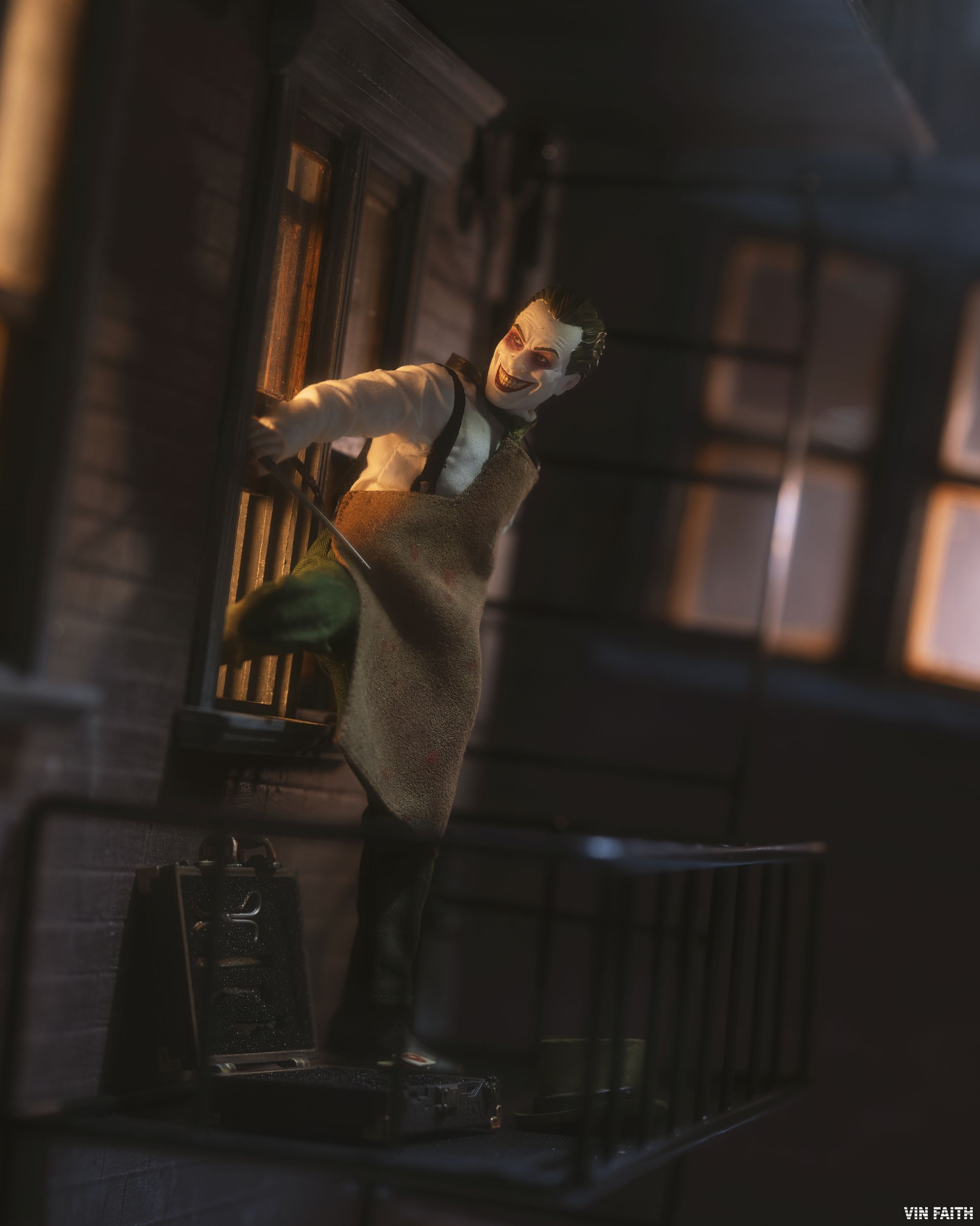 Inspiration: I love the design of this Joker and the classic horror villain vibe he evokes. This pose paired with the excellent smiling head sculpt portrays his menacing sense of humor while stalking his victim.