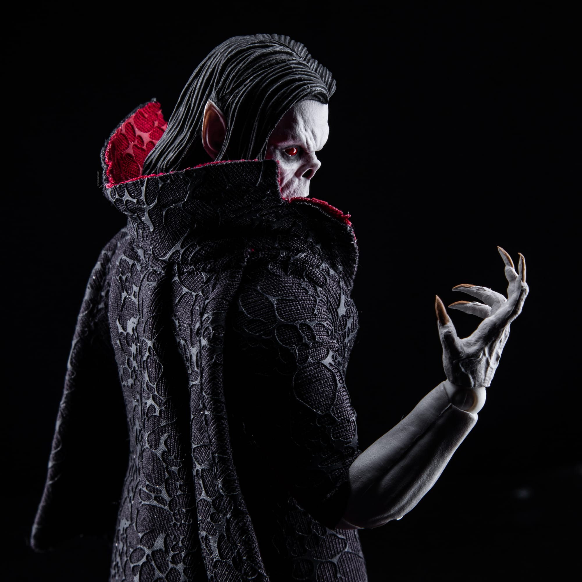 Inspiration: For this image, I wanted to show Morbius in some lovely low-key lighting. Showing off the details and texture in his costume, and the red in his eyes.