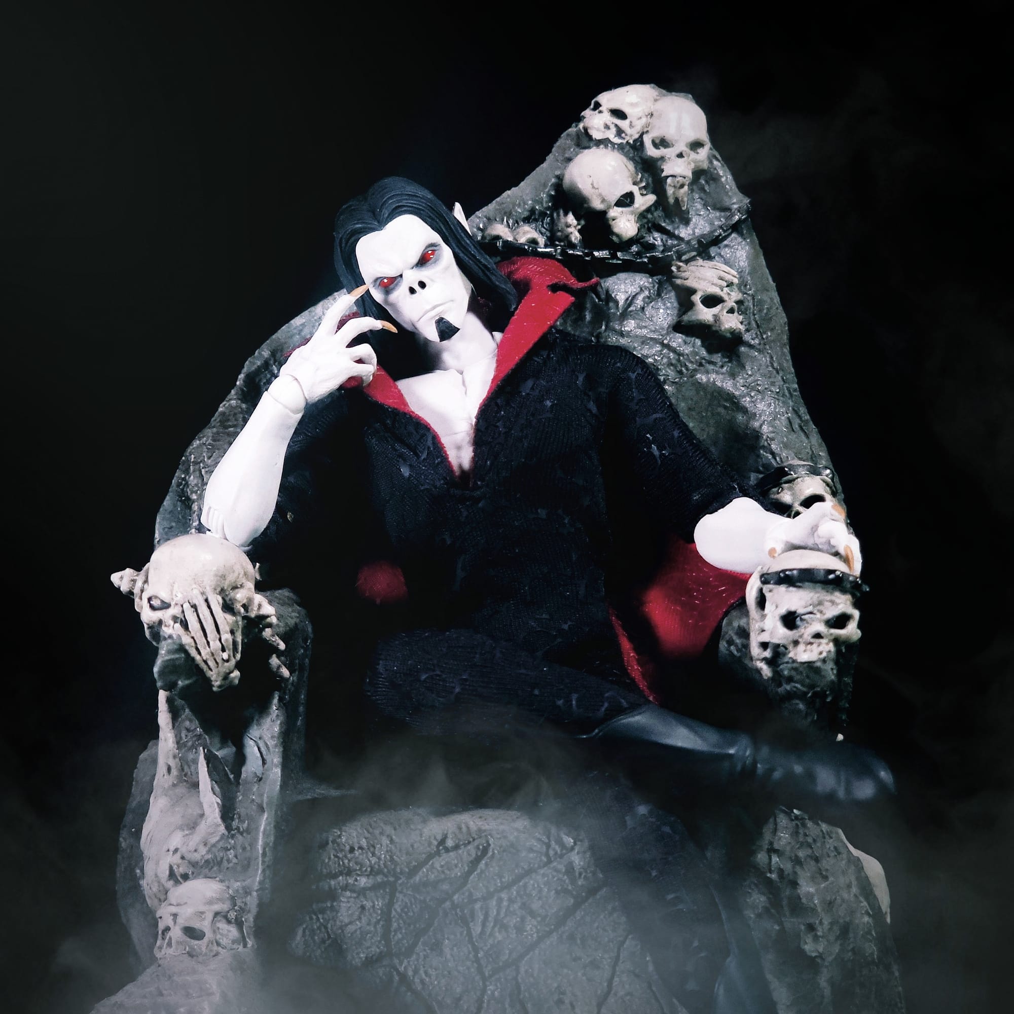 Inspiration: My inspiration for this photograph was to try and capture Morbius in deep thought. Being a scientist, I feel he is always trying to figure out something. I also had the really cool skull throne and wanted to use it more!