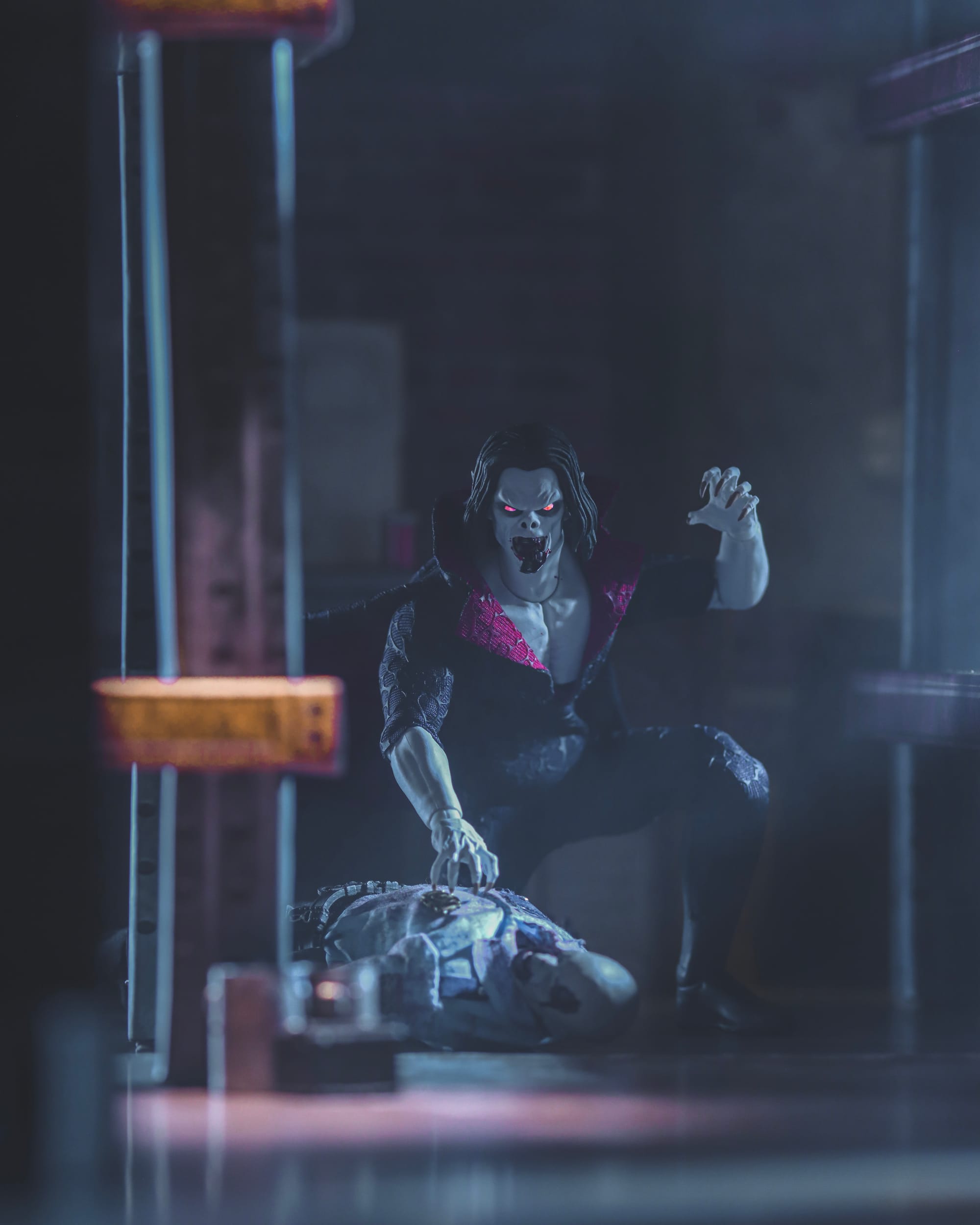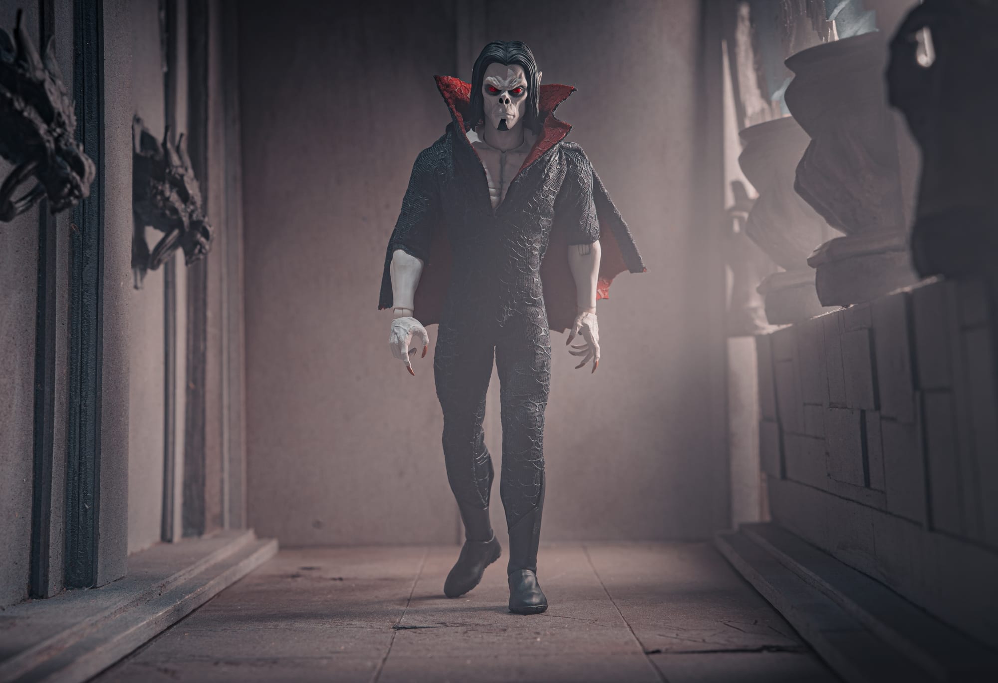 Inspiration: I wanted to depict Morbius going back to his lair after a long, successful night of hunting. I gave him the cool-guy walking pose and set the tone and atmosphere to give it that dark and gloomy feel. Just a quick, simple shot of this fantastic figure.