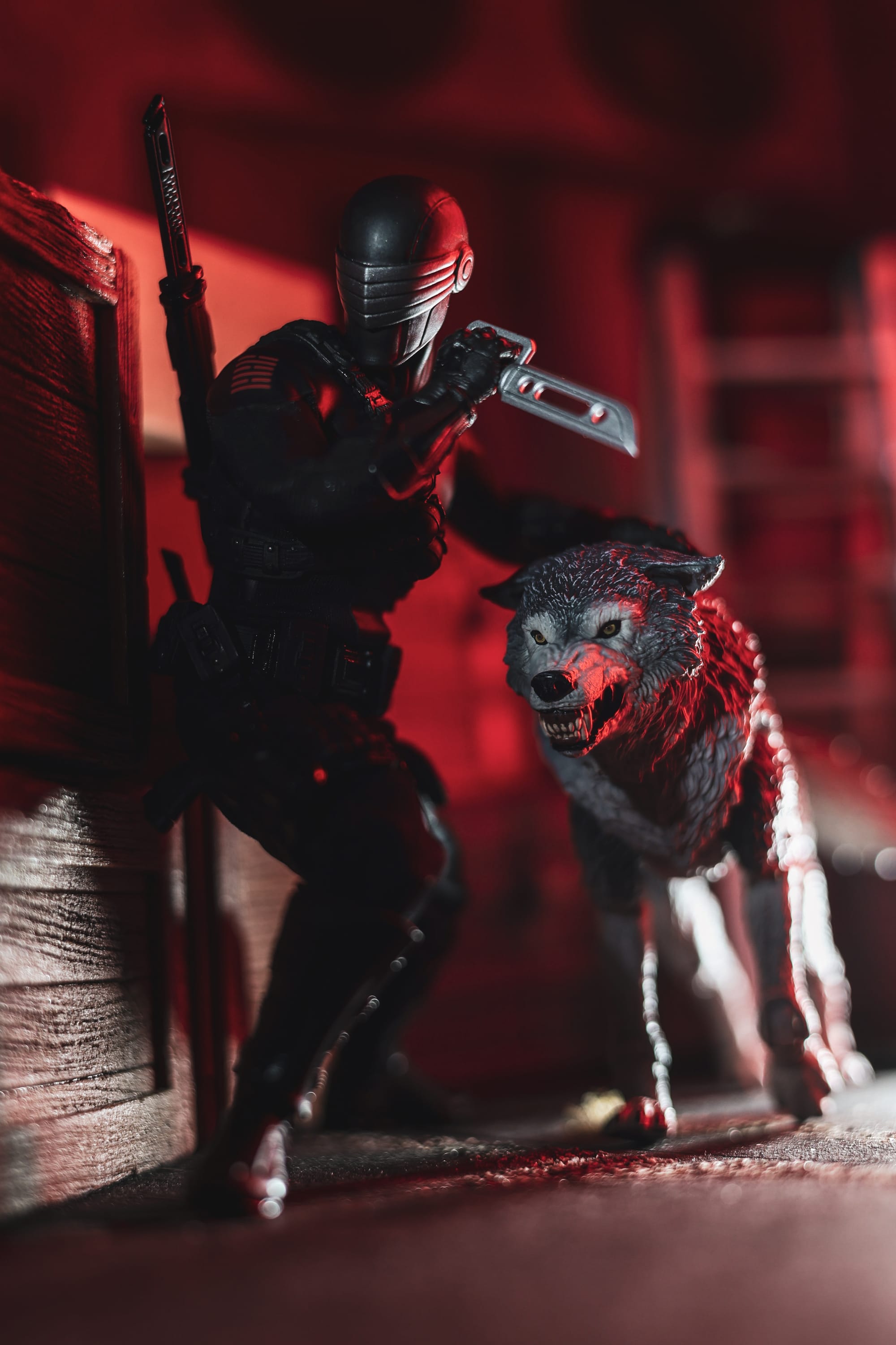 Inspiration: On the day I received my Mezco Snake Eyes I posed it around for literally an hour just messing with it, and then I opened up the Timber that came with it and I thought "Oh man... now I have an idea" So I went straight to shoot in my backyard. The Timber is what sold me on the shot.