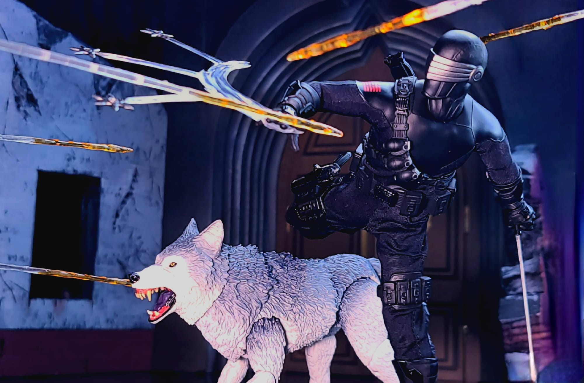 Inspiration: Upon encountering the promotional images of Snake Eyes, I found myself compelled to explore poses for the figure. Given his mastery as a ninja, I envisioned portraying him amidst the shadows of an enigmatic Cobra stronghold. As his cover is compromised, I aimed to depict his swift retaliation against the enemy, showcasing his remarkable ability to excel in both stealth and during a firefight.