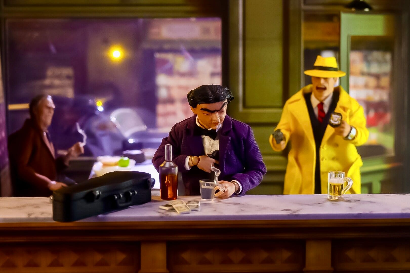 Inspiration: My inspiration for this shot was to showcase all the incredible detail and craftsmanship put into creating these amazing action figures! I’ve always been a fan of Dick Tracy and his many villains especially him having the first smartwatch! I wanted to create an epic action scene with both characters engaging in a shootout. Dick Tracy backed into a corner knowing that he’ll somehow, someway find a way to overcome and capture Flattop.