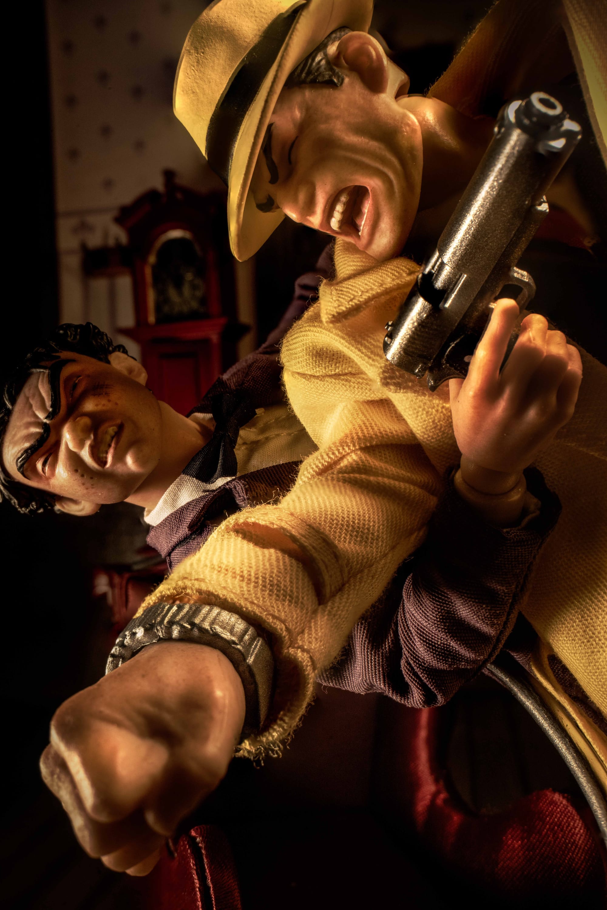 Inspiration: My inspiration for this photo comes from my deep love of classic gangster films. I wanted to capture the iconic moment of Dick Tracy getting the upper hand on his notorious nemesis, Flattop, bringing that timeless cinematic tension to life.