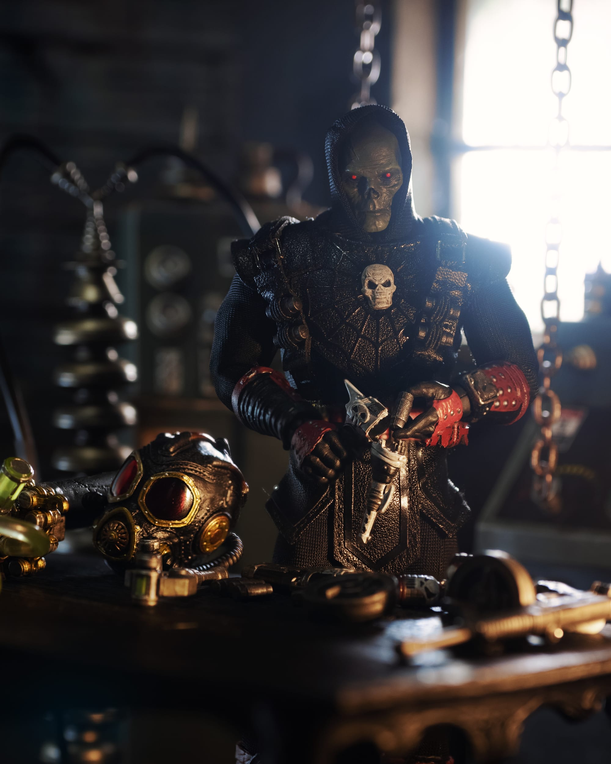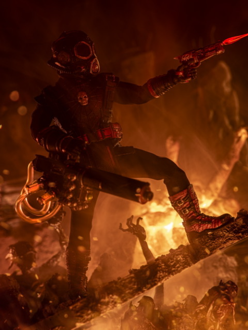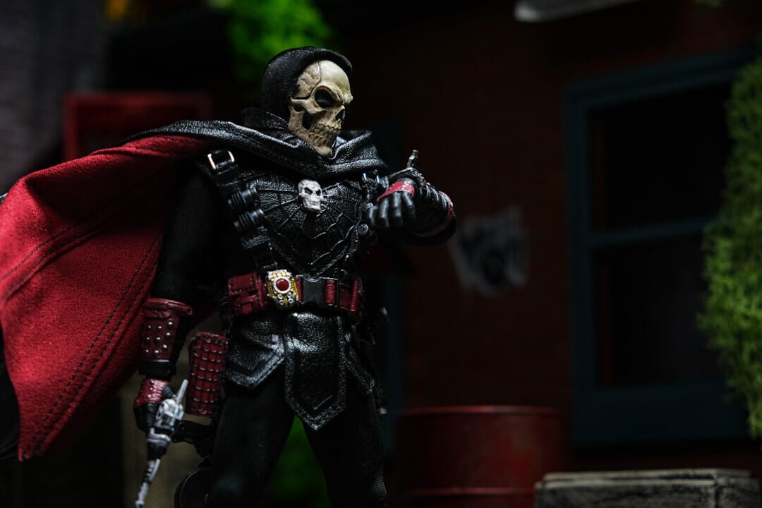 Inspiration: Doc Nocturnal blends classic horror and pulp noir with striking black and crimson details. His skull mask and accessories give him a dynamic, action-ready look. The figure’s sculpting and textured suit offer a bold, fearsome presence. Perfect for collectors seeking a dark, cinematic piece.