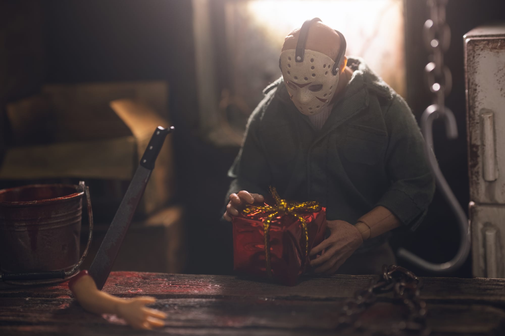 Inspiration: This shot showcases Jason getting his Xmas shopping done early because he has to work on Friday the 13th in December!