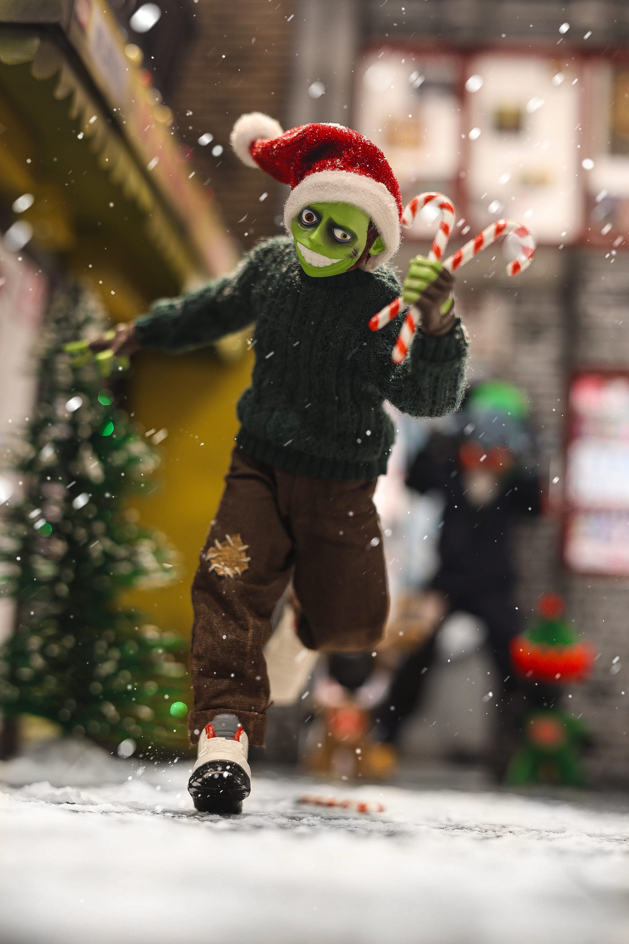 Inspiration: Jackie Vaporoni on the run having just pilfered some Christmas Candy Canes!