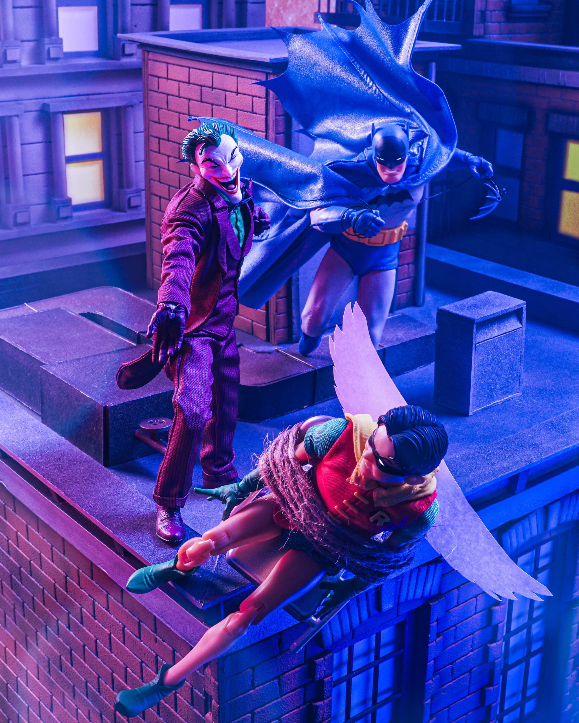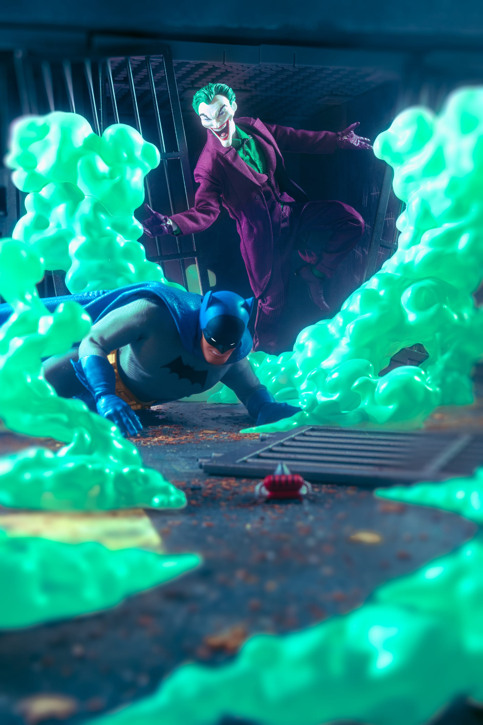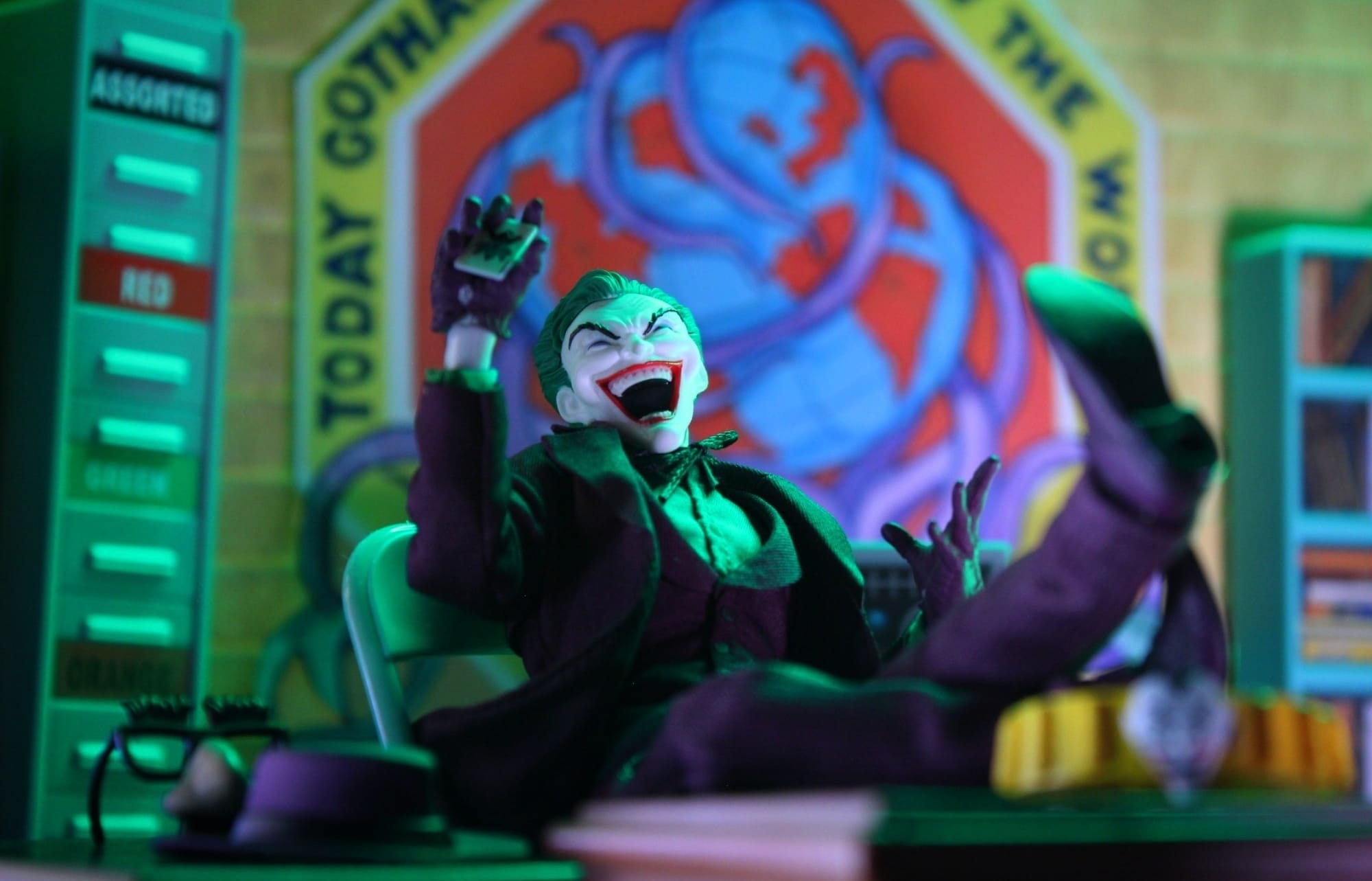 Inspiration: I was obsessed with the 66 Batman Movie as a kid! As soon as I got my hands on this fantastic Joker, I knew I needed a shot with him in that "Hideout" basking in the chaos he causes in Gotham City! I made a mural like the one in the movie and went for it!