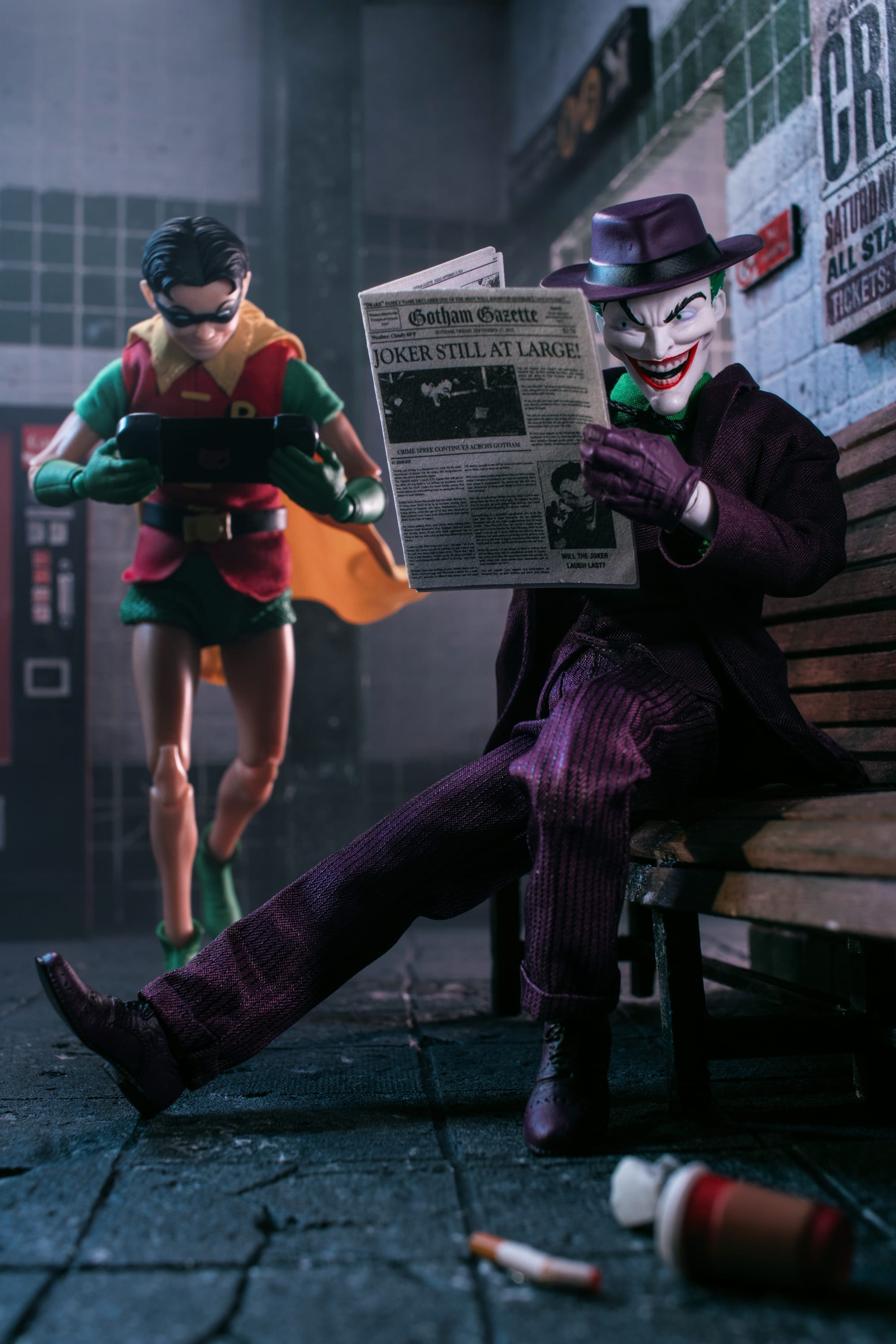 Inspiration: I am having so much fun with this Joker and making him do pranks/jokes in true golden age fashion! He loves to terrorize Robin, and this shot is a good example of today's world with the younger generation and their devices!