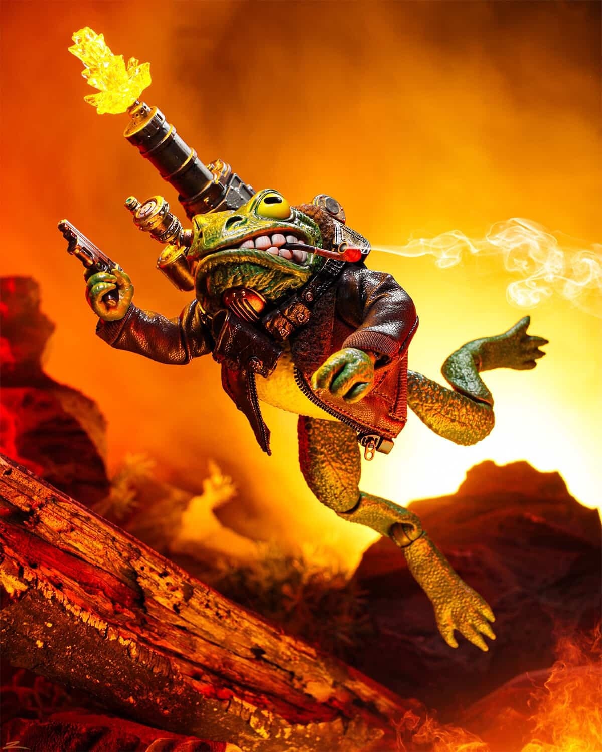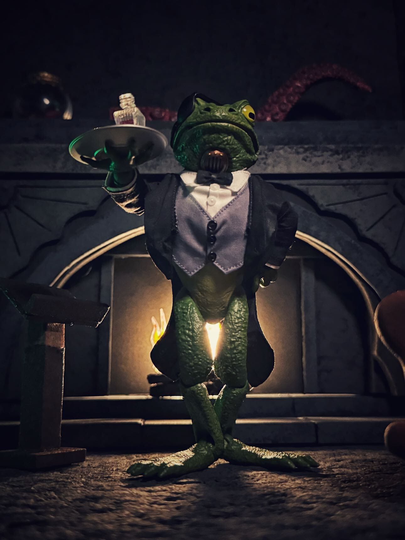 Inspiration: Woodford seems like a pensive and studious frog until it comes to defending the earth as a spectral knight! This photo was inspired by every action movie that exists! I wanted to show Woodford leaping away from the carnage as he pursues more evildoers to silence!