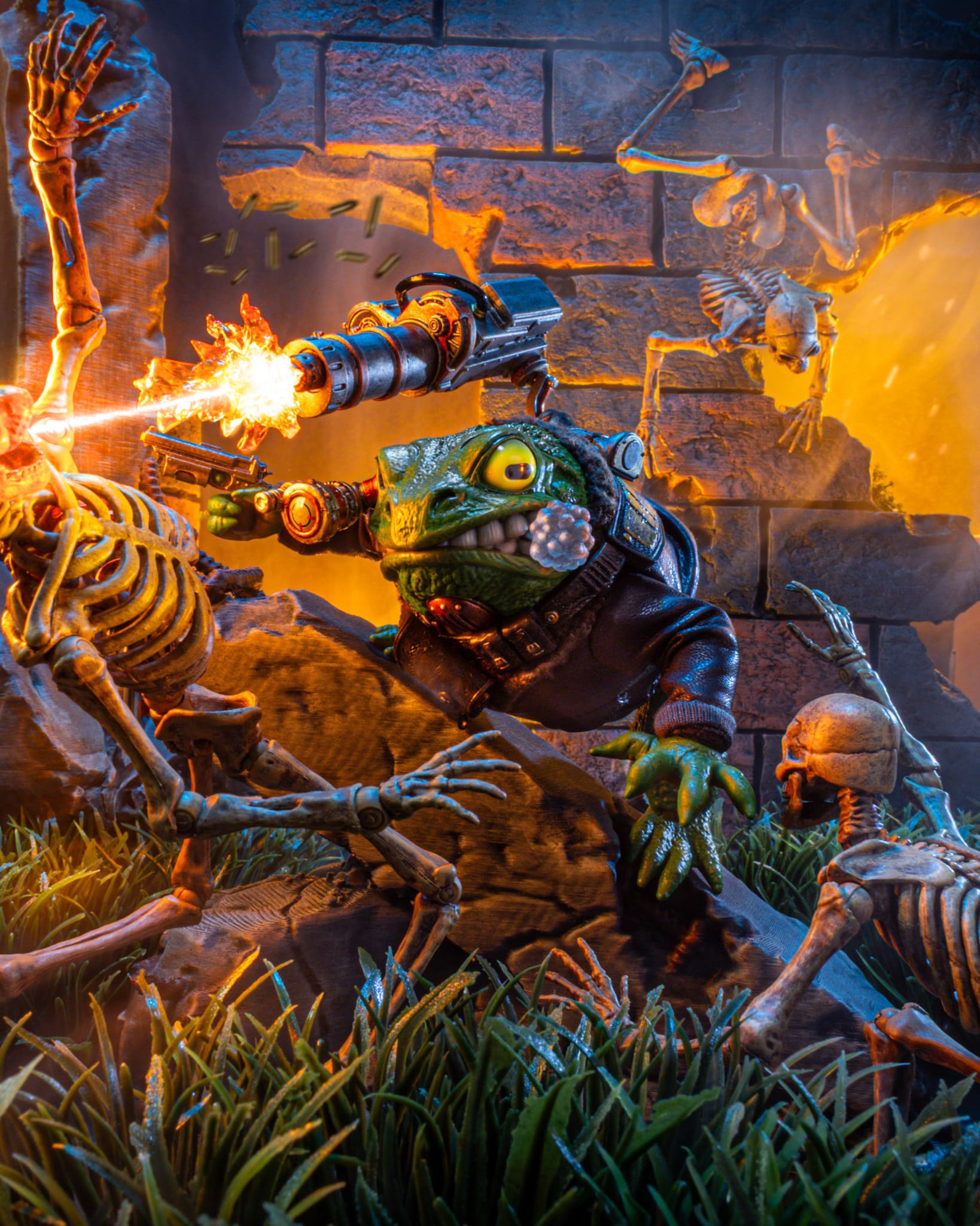 Inspiration: In this photo, I wanted to show the wild side of Woodford in his bomber outfit and Gatling Gun at work.