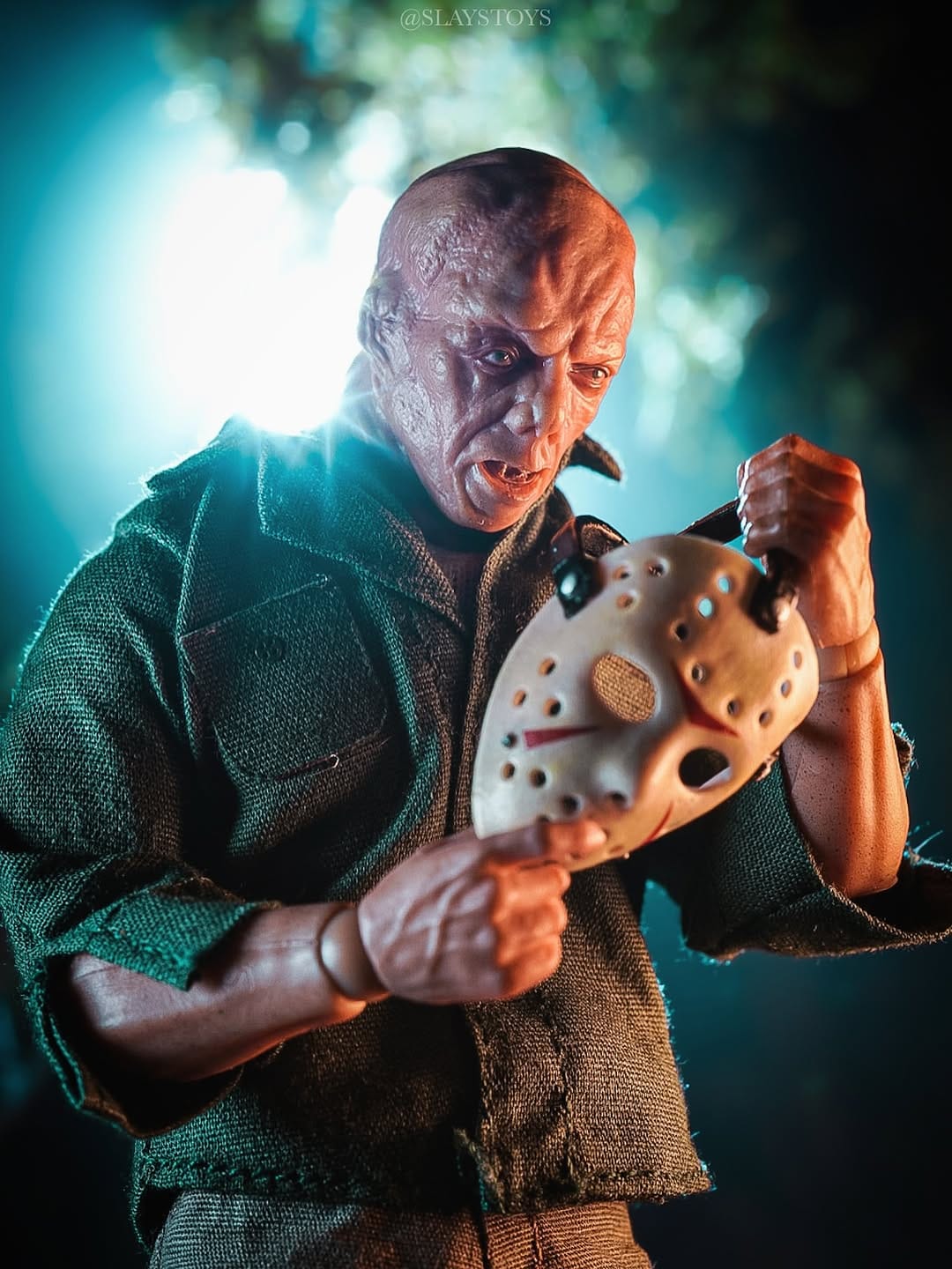 Inspiration: This shot is a tribute to the golden age of 80s slasher horror — raw, gritty, and unapologetically eerie. I grew up watching those late-night VHS tapes where masked killers like Jason Voorhees ruled the screen, stalking through foggy woods and isolated campsites. I wanted to recreate that exact atmosphere — the cold blue tones, the dense fog, and the tension you feel just before the axe swings. Using the figure, I aimed to freeze a moment straight out of a lost frame from an 80s horror flick — something that feels both nostalgic and chilling. It’s my love letter to practical effects, classic horror tropes, and the unstoppable terror that defined a genre.
