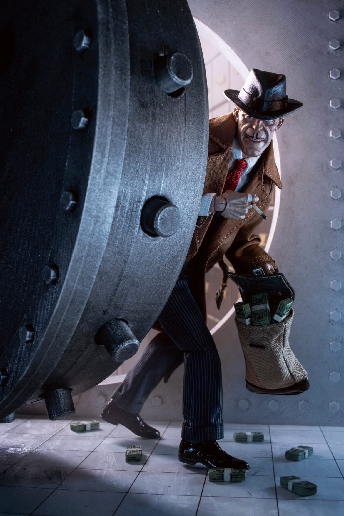 Inspiration: Inspiration was down to the planets aligning, as I was already building a bank vault diorama, and upon receiving Sparky it was a match made in heaven! I wanted to shoot Sparky like he didn’t have a care in the world, robbing a bank, like he was “collecting taxes” if you catch my drift 😉😂