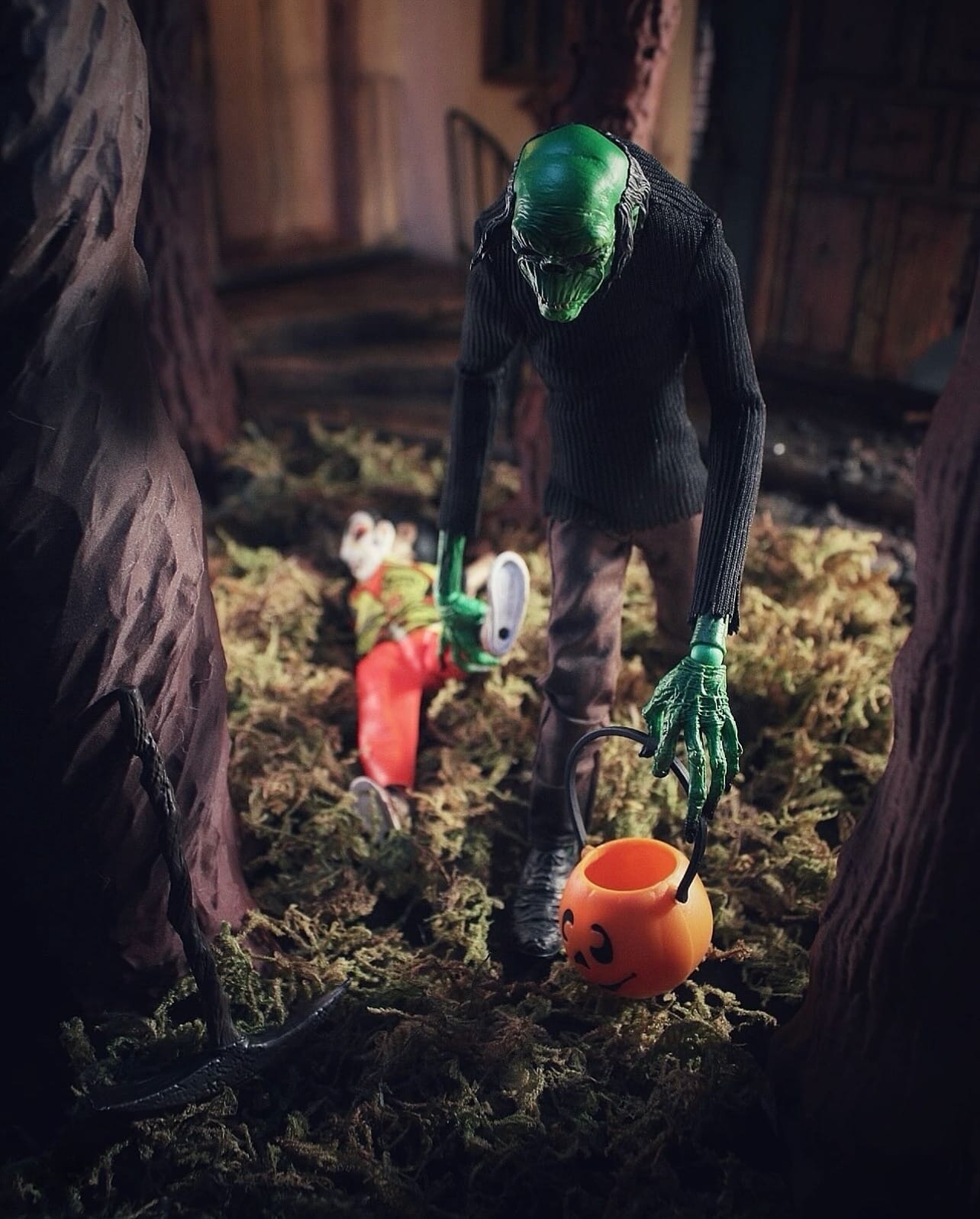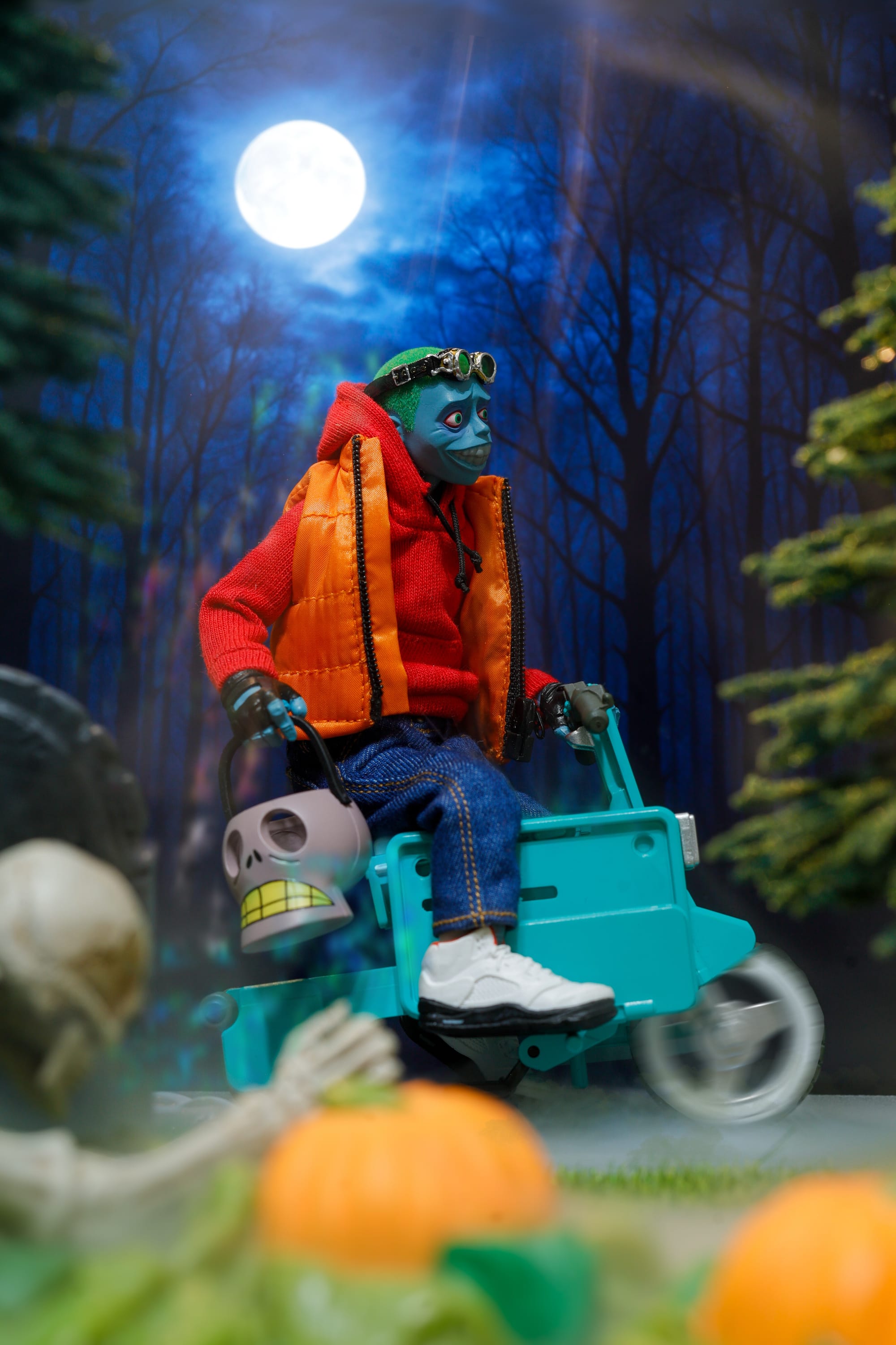 Inspiration: I wanted this shot to capture that same feeling I had watching Silver Bullet as a kid — that eerie stillness when Corey Haim is on the bridge, fireworks popping, and you see the world from the werewolf’s point of view. That mix of thrill, fear, and wonder stuck with me. I love when toy photography feels tangible, like you could step right into the scene and hear the crickets and the hum of the scooter.