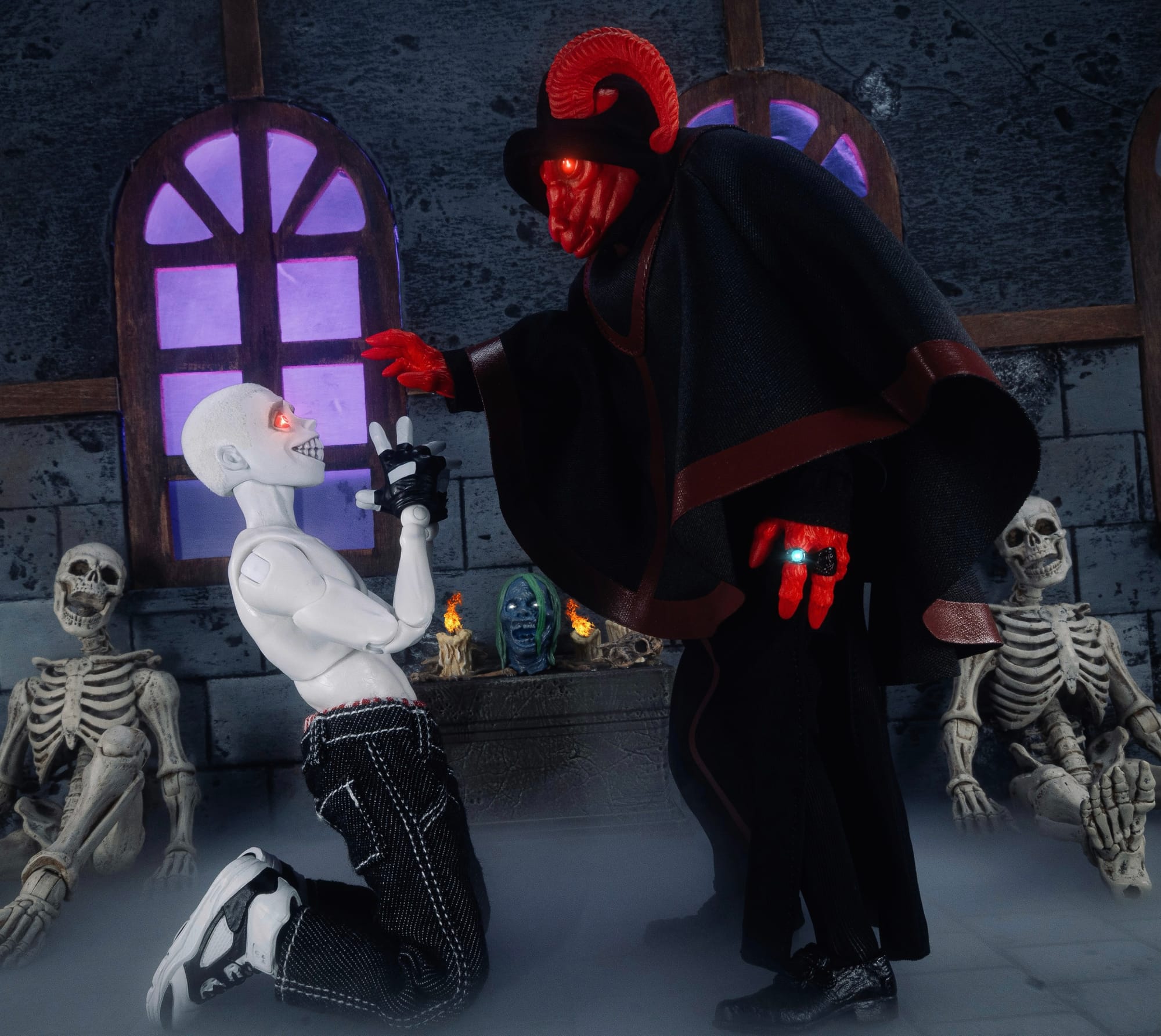 Inspiration: I have been a horror fan all my life and wanted to tackle a supernatural theme just in time for Halloween. My goal was to recreate a creepy satanic ritual scene using some of my all-time favorite Rumble Society characters.