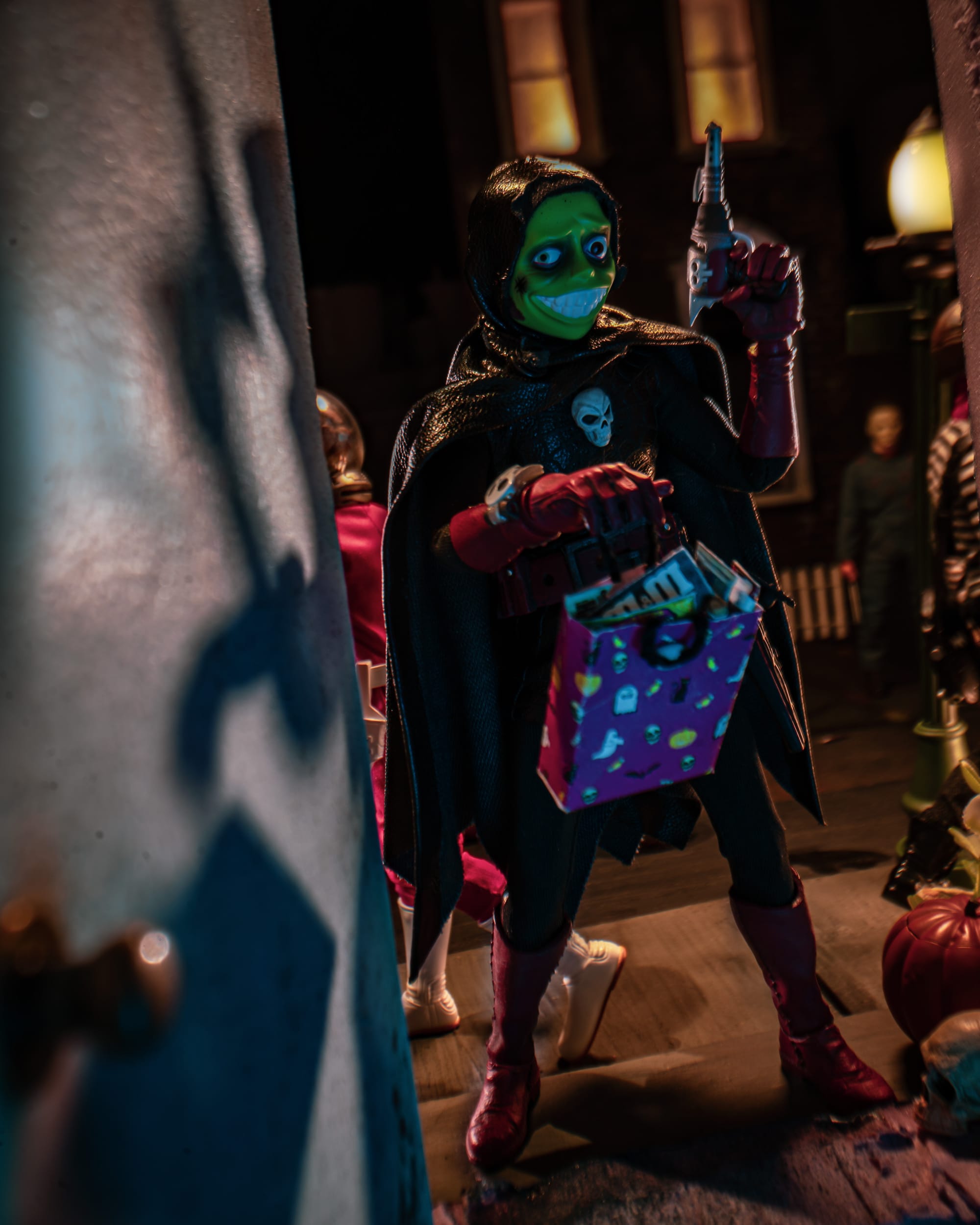 Inspiration: I love the Halloween season and also putting Vapor into different outfits, but this was around the time the 2.0 Doc Nocturnal was revealed, so that was taken into account. I wanted to have a pic where it felt as if you had just opened the door and been greeted by a trick-or-treater. The shadow that Vaporoni cast onto the door was pretty cool!