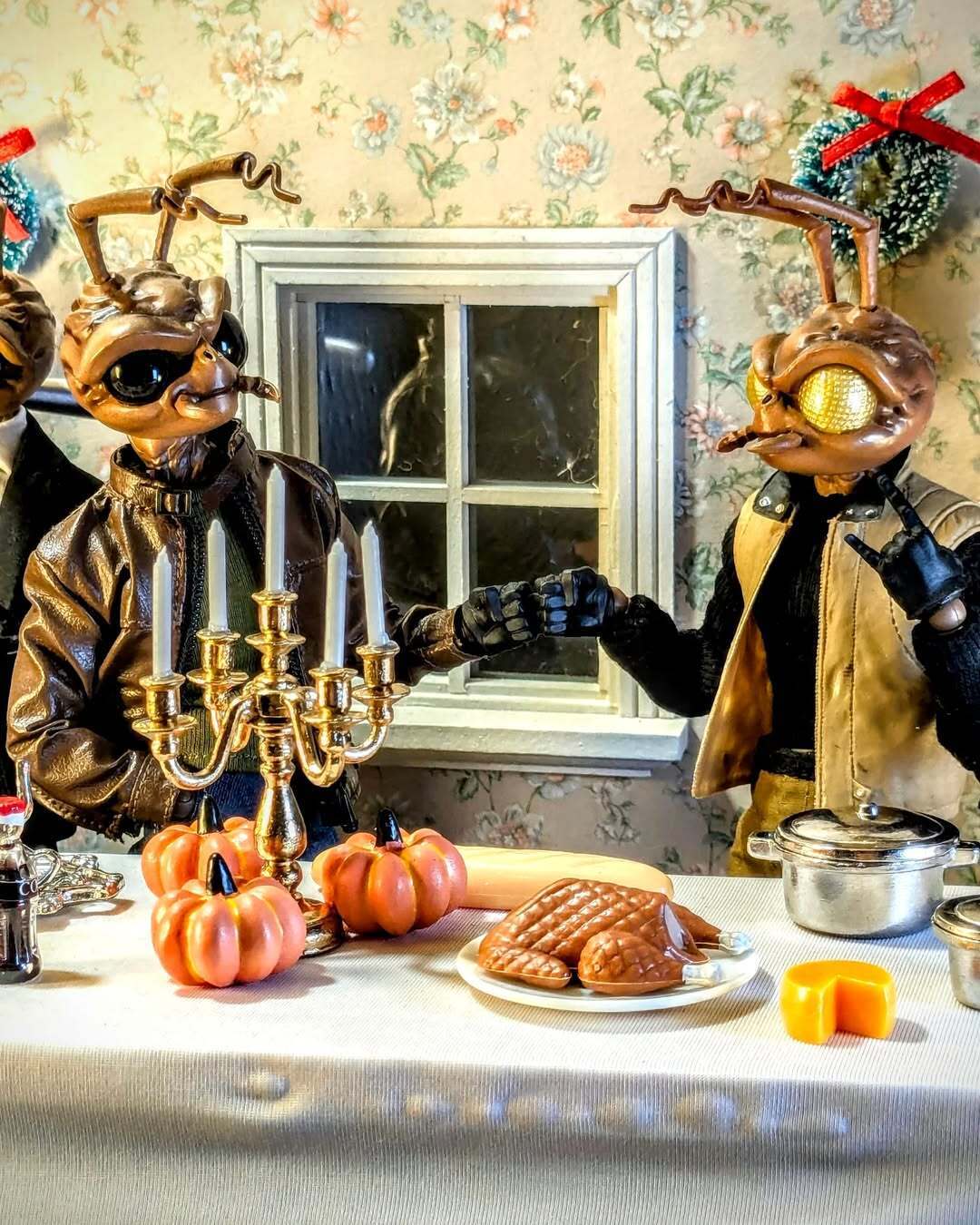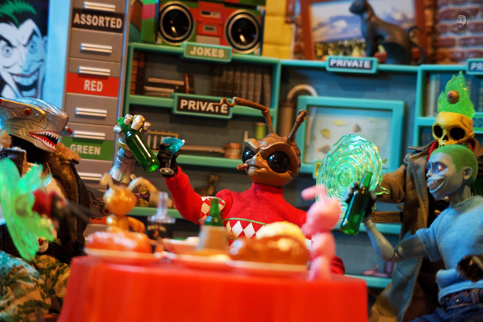 Inspiration: Thanksgiving! Felt like the perfect time for the Rumble Society to get together, put aside their differences, break some bread and give thanks! Plus, a photo idea like this gives me a great chance to use as a lot of my favorite Mezco and Mez-Itz figures!