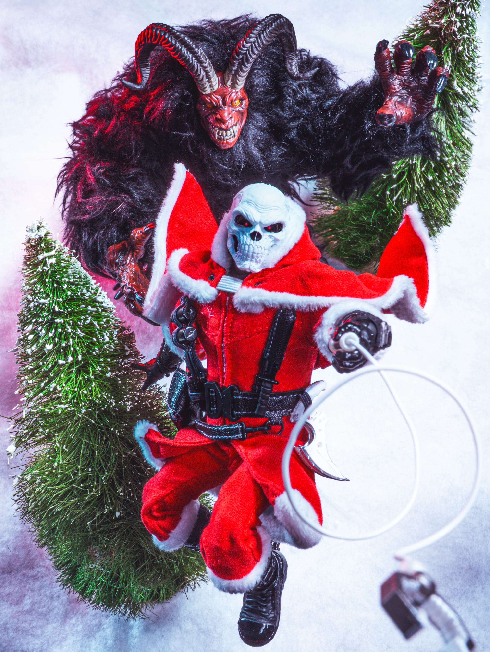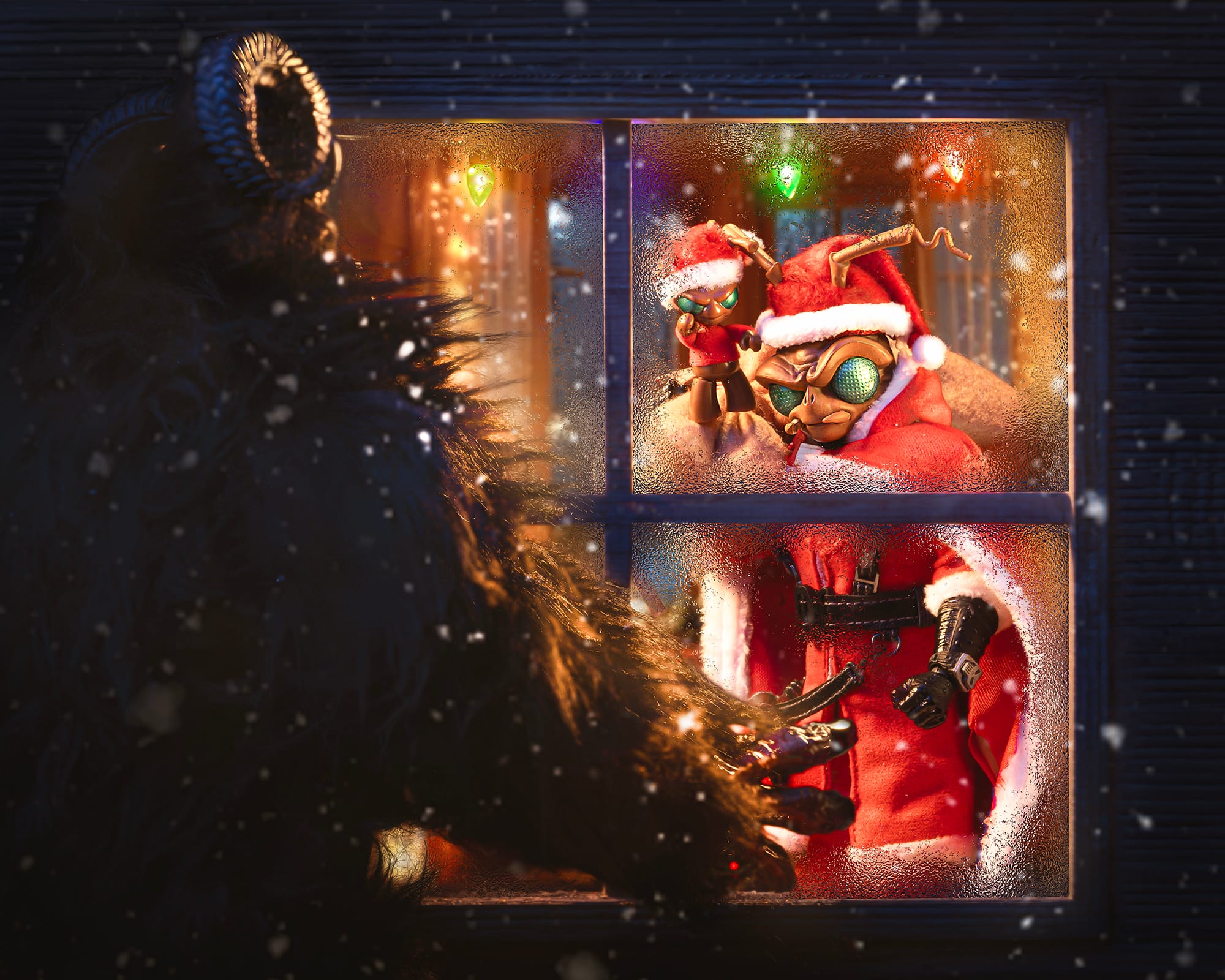 Inspiration: I really wanted to put together a “comic cover” of sorts to put Doc Noc in the forefront whilst showing the formidable Krampus close behind and ready to strike. Does Doc Noc sense his presence? Find out next time!
