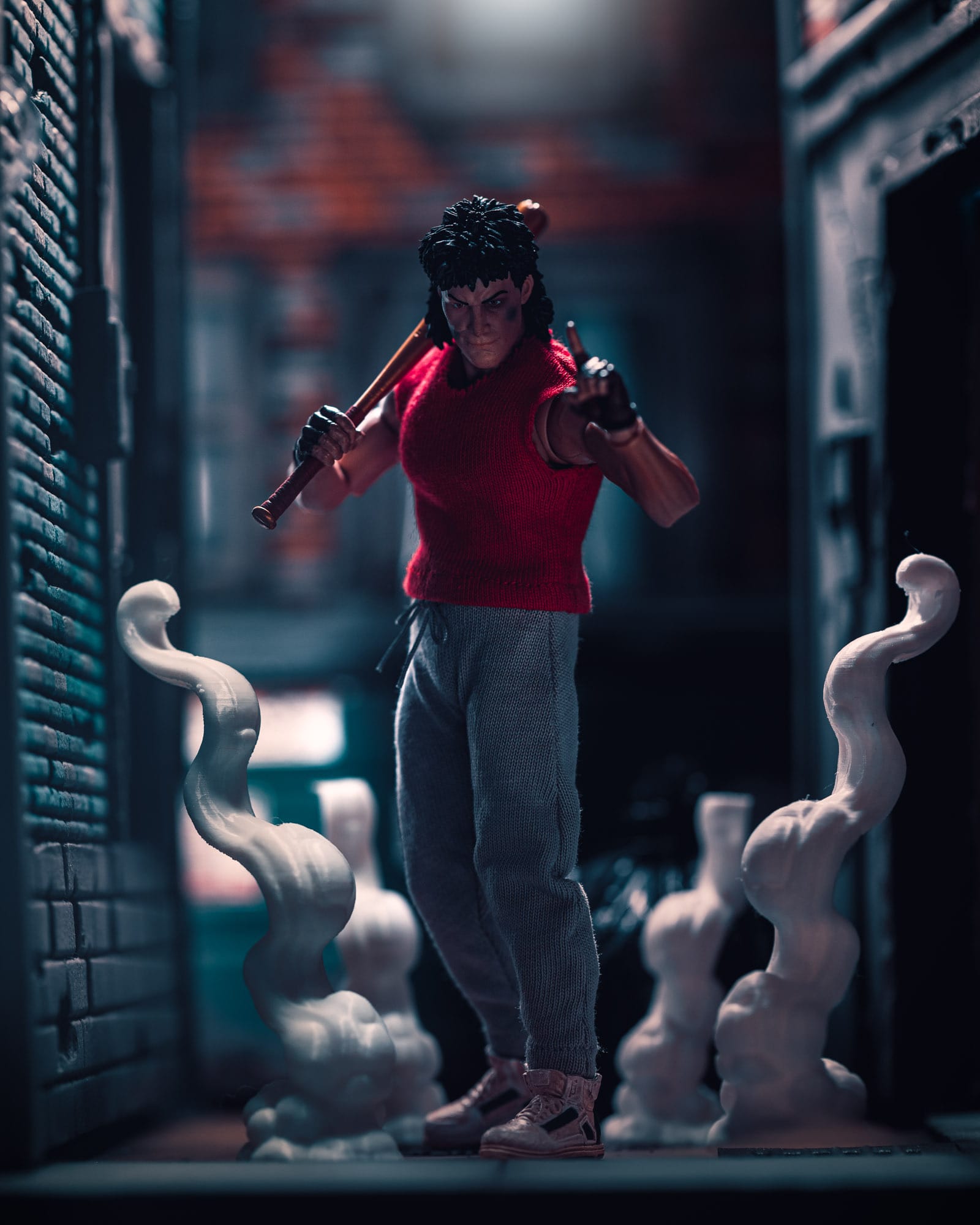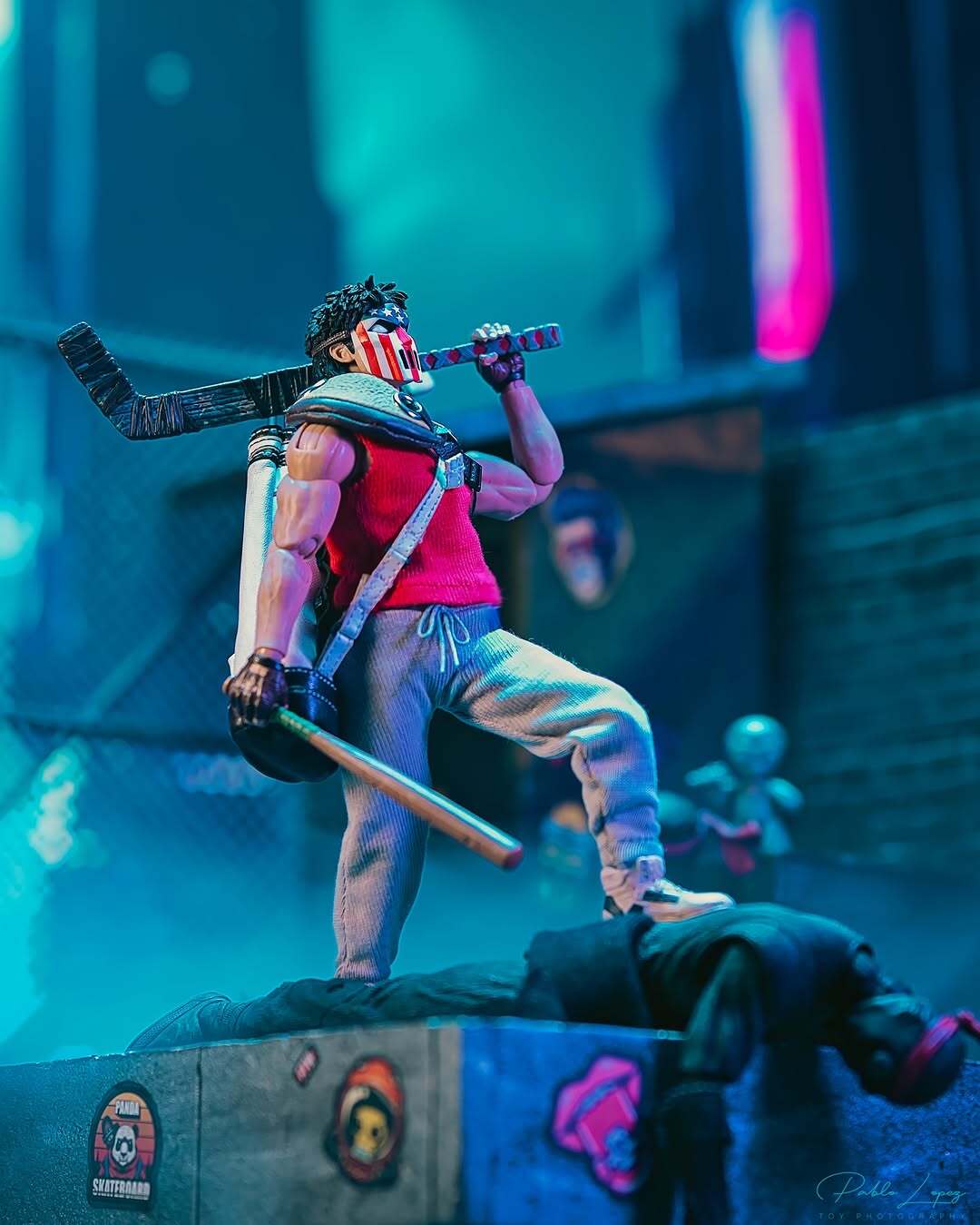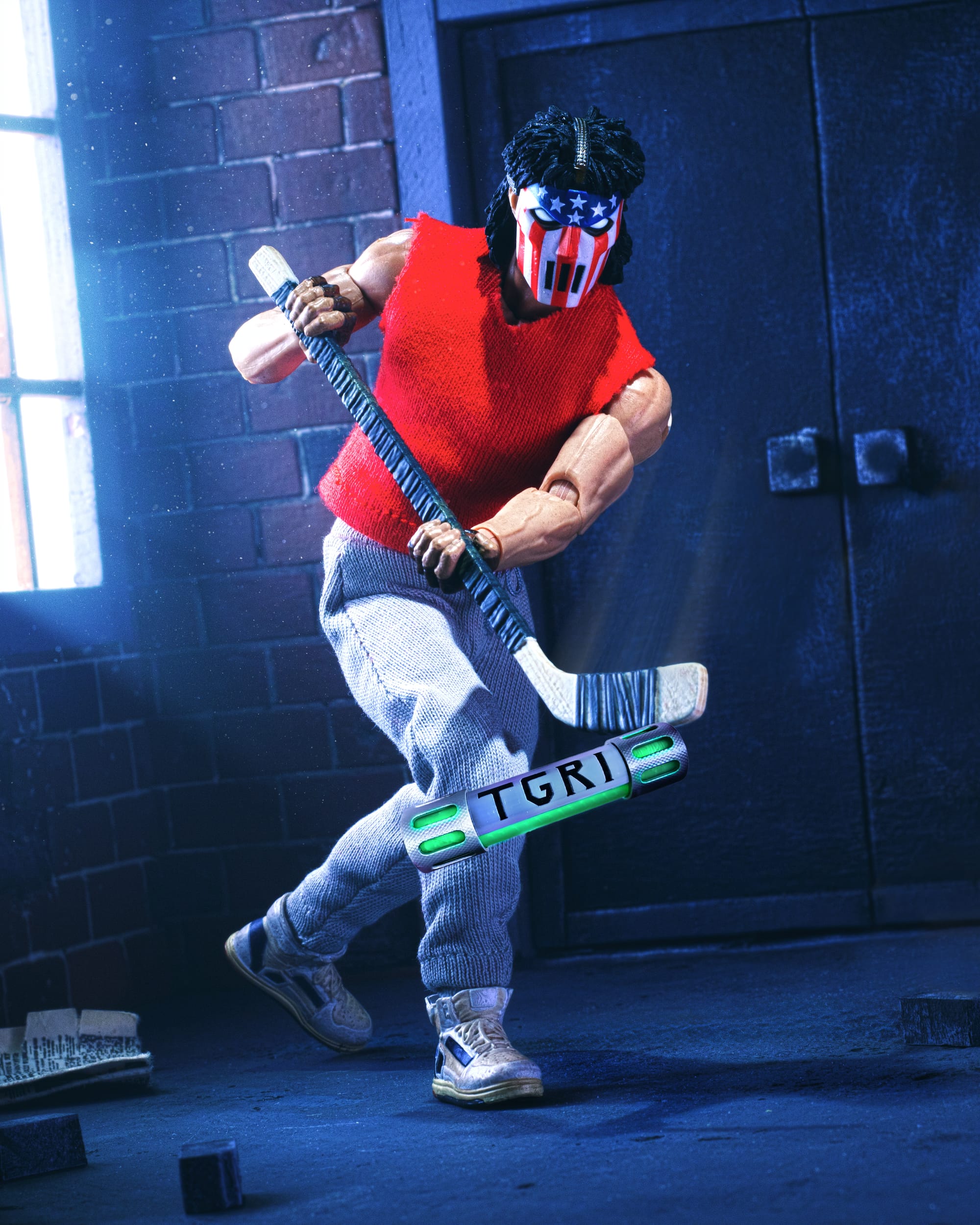 Inspiration: I was trying to make this shot look like a comic book scene come to life. Thanks to Mezco, that part’s easy. The smack on the TGRI bottle was Casey’s silent way of saying, “I’m the referee tonight… and you just got benched.” 🏒💥TGRI slime? More like target practice.