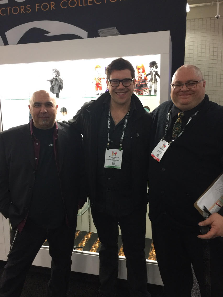 Damien Glonek (left) and Mike Drake (right) along side a fan of Mezco Toyz, Tyler Green of Face Off.
